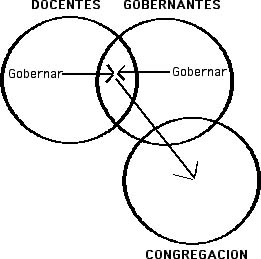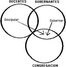 Este diagrama representa el concepto de paridad gubernamental. Fíjese que los dos oficios se superponen. Juntos, gobiernan la congregación, pero no se gobiernan el uno al otro.