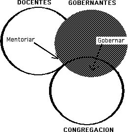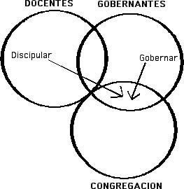 Este diagrama representa el concepto de paridad gubernamental. Note que los dos oficios se superponen. Juntos, gobiernan la congregación pero no se gobiernan el uno al otro. 1Timoteo 5:17
